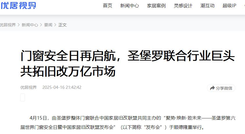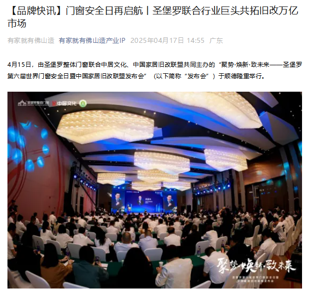 Фошан, Гуангдонг - 15 април 2024 година - 6 -тиот светски ден за безбедност на вратите и прозорецот, чиј домаќин беше домашна група Синполо, завршена со огромен успех во Фошан, Гуангдонг. Совпаѓајќи се со започнувањето на Алијансата за реновирање на домови во Кина, овој обележје на настанот привлече над 400.000 гледачи во живо и собра 1,26 милиони кумулативни посети, заработувајќи широко распространето признание од лидерите во индустријата и глобалните медиуми. Експерти во индустријата, влијатели и партнери во медиумите за да ја засилат свеста. Клучни бројки како што се Је Лингју (извршен генерален директор на Сина Дома), uу Зекун (познат „Гуру на врата и прозорец“) и Ли Ванхао (основач на маркетинг на иновации во Јипинтанг) ги здружија силите за промовирање на настанот. Pre-coverage across Sina Home, Tencent, Today’s Headlines, and other platforms generated 153,000 visits, setting the stage for a high-impact gathering.Event Highlights: Media and Experts Celebrate InnovationThe event drew attention from leading media outlets, including Guangdong Broadcasting Television, Yangcheng Evening News, and Touching News APP, which highlighted Shengbaoluo’s role in advancing door and window safety standards. Инфлуенсери во индустријата и здруженија како Здружението на индустријата за врата во Гуангдонг и Здружението на врата и прозорецот Фошан ја пофалија посветеноста на Шенгбаолуо за одржливи решенија за реновирање на домови.